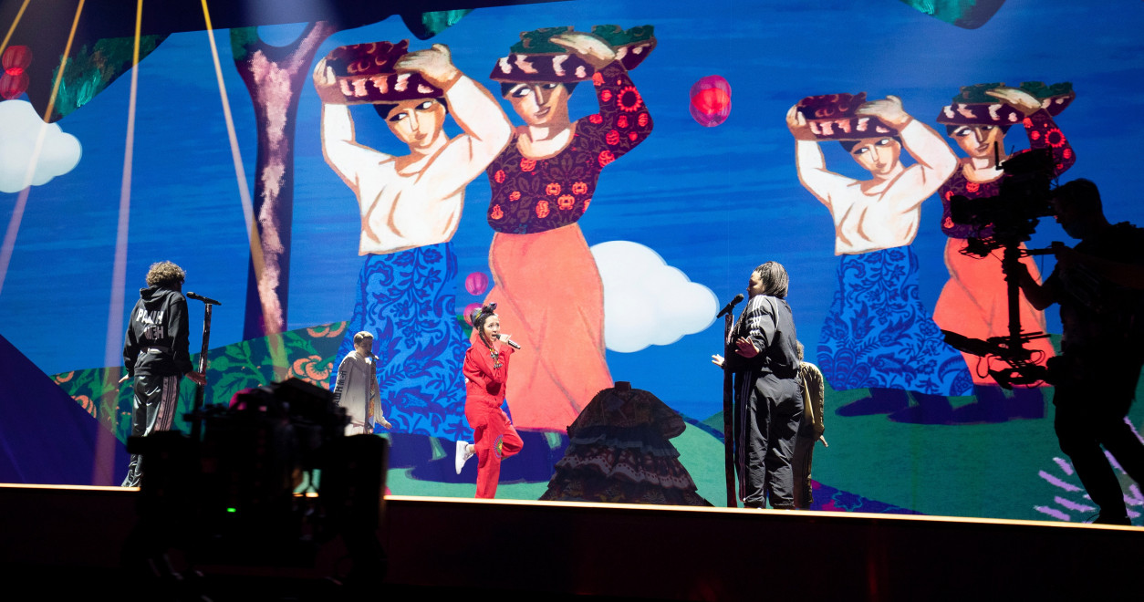 Russland hat den Papp-Vulkan von 2018 eingekleidet und Manizha reingesteckt. Es sieht total absurd aus, was noch schlimmer wird, als sie mit diesem Monstrum über die Bühne fegt. Der Gipfel der Absurdität ist es dann, als sie eine Klappe im Kleid öffnet, um sich dessen zu entledigen. Klar, es ist witzig und ein Hingucker. Und ja, die Zwänge der Traditionen werden deutlich, aber schadet dieses alberne Gimmick nicht der sonst so starken und ernsthaften Botschaft des Liedes?