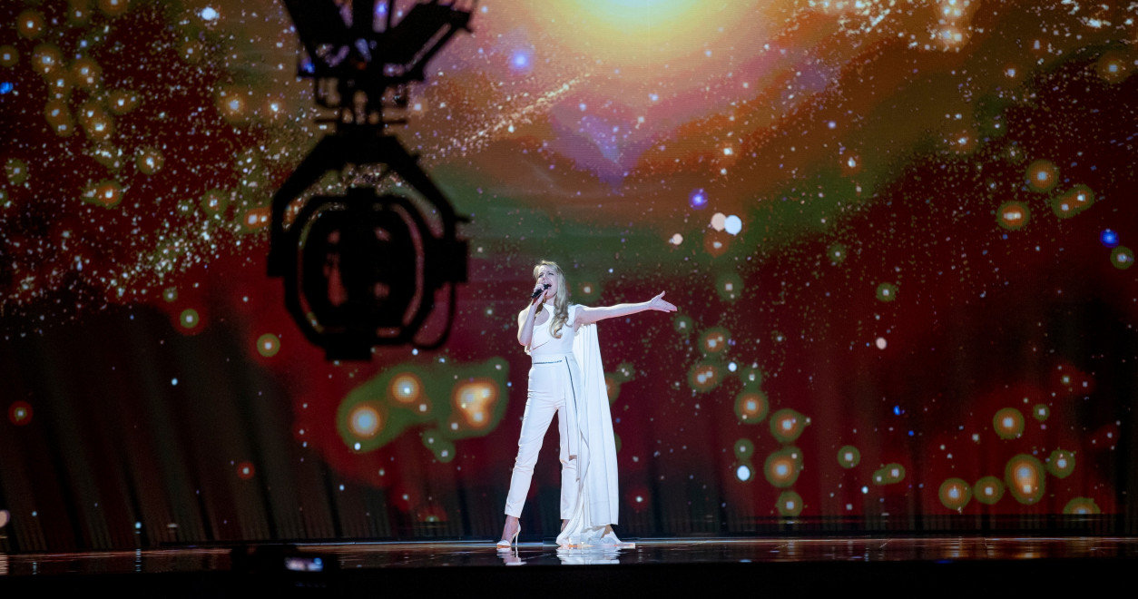 Ana Soklič hat ihr Outfit auch nicht mehr geändert, auch die Inszenierung bleibt eher langweilig. Im Hintergrund kommt natürlich auch hier die LED-Leinwand zum Einsatz. Ana nimmt uns dort u.a. mit auf eine Reise durchs Universum. Ansonsten passiert leider recht wenig. Stimmlich ist sie nach wie vor sicherlich ganz weit vorne dabei, aber ob das auf der Punktetabelle auch so aussehen wird?! Ich bin mir da nicht sicher.