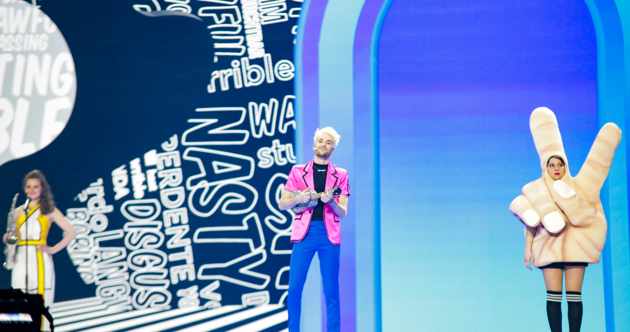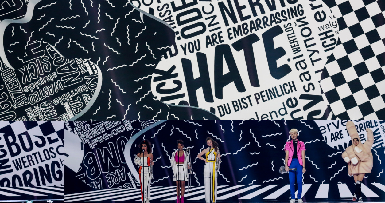 Es werden viele Elemente aus dem Video aufgegriffen. So können wir uns auf eine Farbexplosion freuen und auf das Schachbrettmuster, das Jendrik auch in seinen Insta-Stories ständig verwendet. Das Thema „Hass“ wird in verschiedenen Botschaften aufgegriffen, die im Hintergrund eingeblendet werden. Die Tanzeinlagen wirken locker flockig. Ich fühle mich gut unterhalten, auch wenn der Gesang noch ausbaufähig ist. Dass er das aber prinzipiell kann, ist ja bekannt. Ich denke, da es seine erste Probe ist, ist er noch so gehyped vom Moment, dass er darauf keinen gesteigerten Wert gelegt hat.