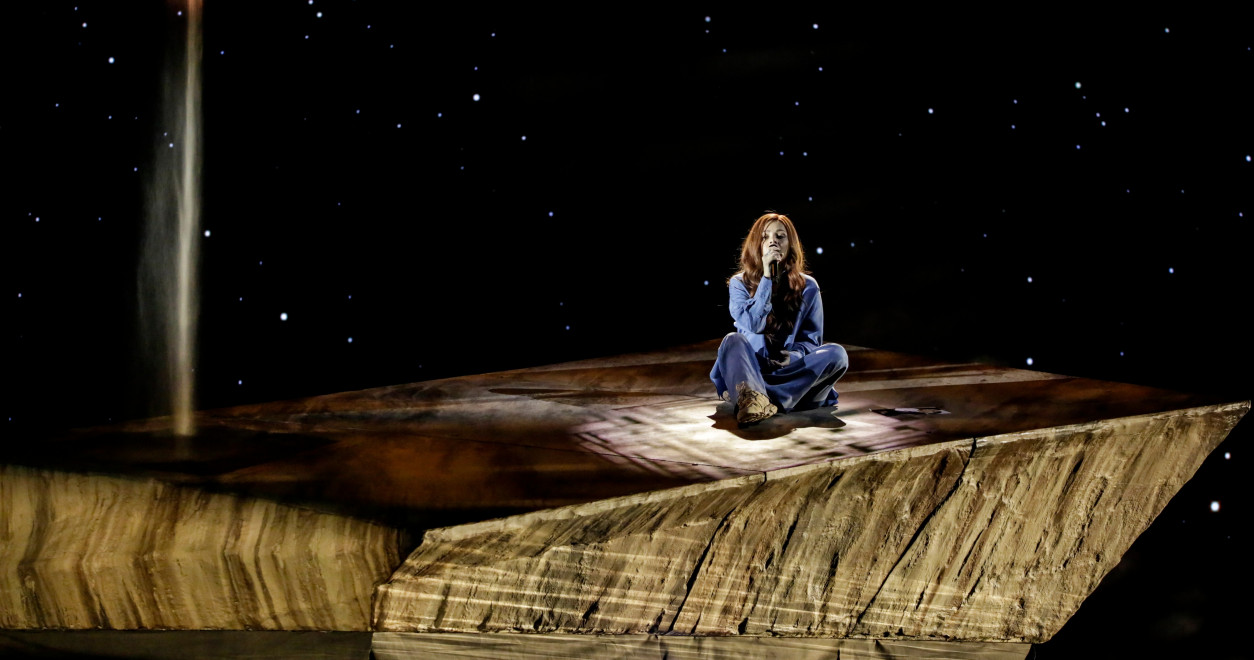 Bulgarien zeigt eindrucksvoll, warum sie in den letzten Jahren so oft weit vorne landeten. Sie haben nicht nur eine tolle Sängerin, sondern auch ein eindrucksvolles Konzept. Victoria steht auf einer Drehbühne, die an einen Felsbrocken erinnert. Es hat auch was von einer Mondlandschaft, mit Sternen und dem Weltall im Hintergrund. Ein schöner Effekt: Sand rieselt von der Decke und Victoria greift danach, lässt ihn nachdenklich durch die Finger rieseln. Was eine schöne Symbolik. Finale sicher, Top 5 gut möglich.