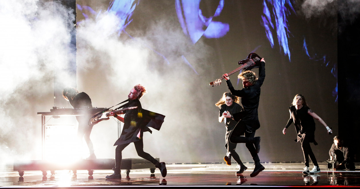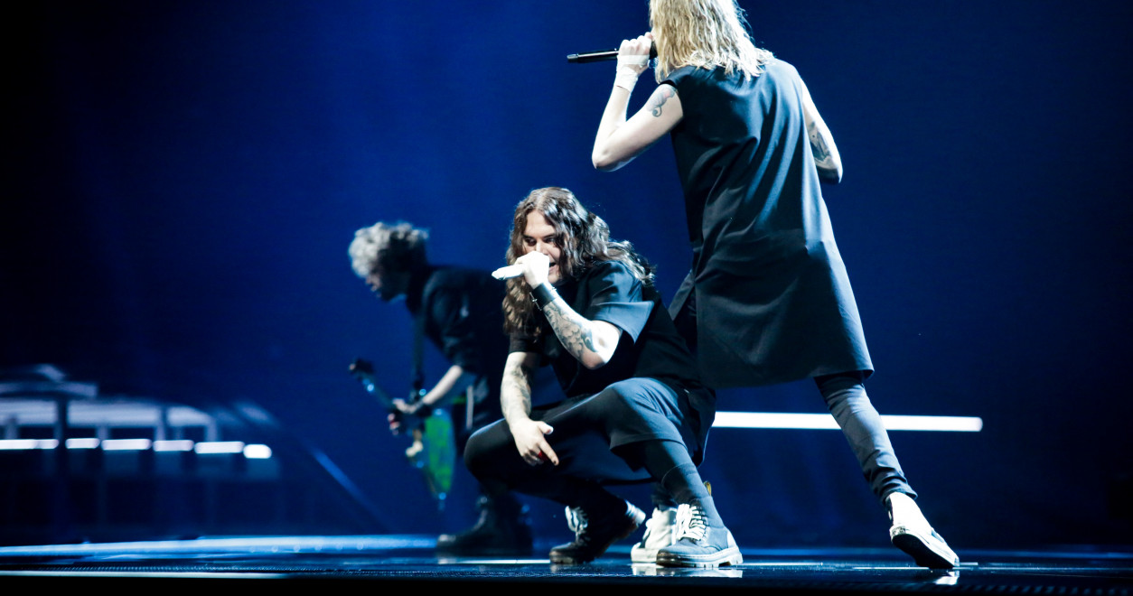 Finnland bringt den Auftritt des Vorentscheids auf die große Bühne. Gleiche Outfit, ähnliche Aufstellung und Bewegungen der Band. Es ist halt eine Rockband die ihren Song abfeiert. So wie man das sehen möchte. Im Hintergrund hängen Leute kopfüber von der Decke. Nicht in echt, nur auf der Leinwand. Sieht trotzdem interessant aus. Die dominierenden Farben sind rot und schwarz. Es ist alles nicht überraschend und nichts bahnbrechend Neues, aber es ist trotzdem richtig gut.