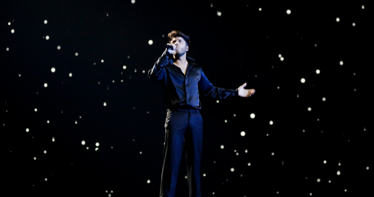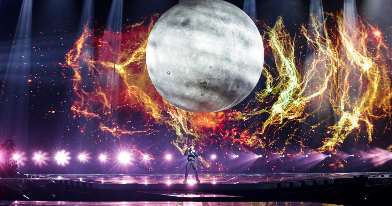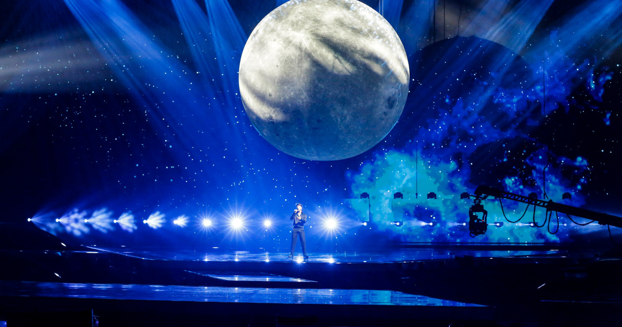 Am Ende eines langen Probentages darf nun auch endlich Blas Canto auf die große ESC Bühne und er sieht in seinem schwarzen Outfit richtig gut aus. Auch hier ist es erwartbar dunkel auf der Bühne. Blas singt den Anfang seines Liedes völlig ohne Hintergrundmusik. Das ist schon echt toll! Was ebenfalls ganz schön wirkt: Im Hintergrund ist erst eine Art Mond zu sehen, was stark an seinen Vorentscheidsauftritt erinnert, aber dann wird deutlich, dass über ihm eine riesengroße weiße Kugel als Mond zu sehen ist. Im Hintergrund wird nun eher eine Sonne abgebildet. Alles etwas verwirrend. Der Effekt mit dem Mond ist ganz schön, aber noch nicht ganz ausgereift. Spanien kündigte ja schon im Vorfeld an, dass sie die finale ESC Version geheim halten wollen und nun ja, es wurde etwas „flotter“ gemacht. Aber die Veränderung ist wirklich marginal.