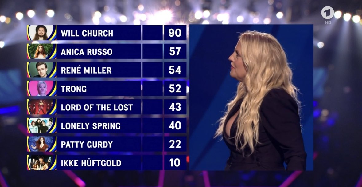 Will Chruch war der nächste Act, der beweisen konnte, dass wir starke Stimmen im Wettbewerb haben. Seine hohen Töne wirkten auf den ein oder anderen Zuschauer scheinbar unsauber oder anstrengend, so zumindest die Resonanz auf den sozialen Medien, aber dennoch machte er einen sehr guten Job, was auch völlig zu Recht mit hohen Jury-Punkten belohnt wurde. Da das Staging jedoch eher unscheinbar und das Genre zu nah an den letzten deutschen Beiträgen war, war das Publikumsergebnis dann erwartbar schlecht.
