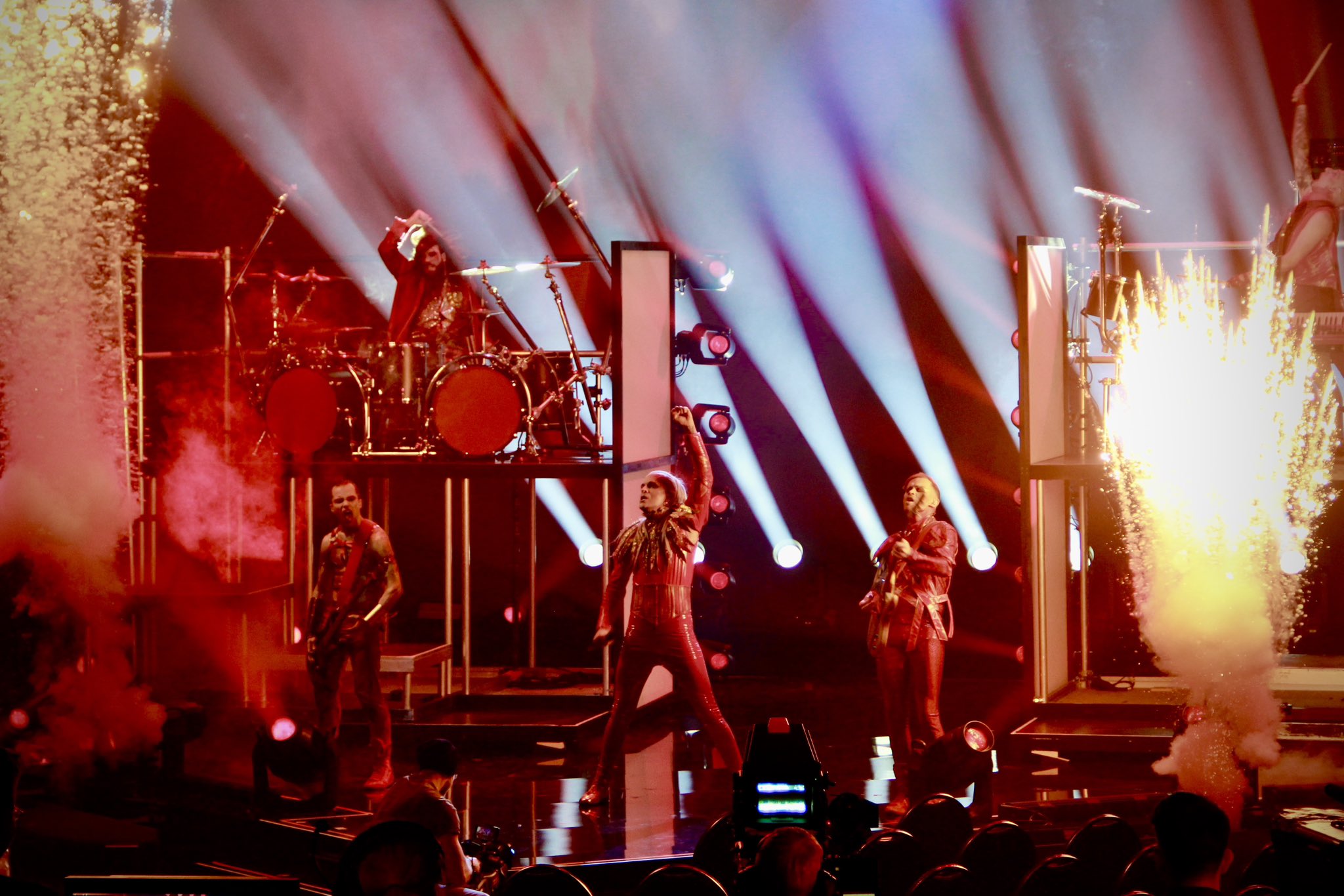 Den Abschluss machte Lord of the Lost, die sehr gut anfingen, zwischenzeitlich aber auch leicht außer Atem wirkten, ein Aspekt den Chris im Vorfeld schon an sich selbst kritisierte. Er sagte, dass ihm die Atmung noch schwerfalle, da die Bühne in den vorgesehenen Atempausen in Pyro-Nebel gehüllt war. Auch ist der schlagereske Schunkelbeat des Glamrock-Songs, der den Sänger auch zum Wippen brachte und der teilweise schwache Text, der „Blood and glitter“ schwerfällig auf „sweet and bitter“ reimt ebenso wenig beeindruckend wie der insgesamt sehr repetitive Beitrag. Dieses Fazit klingt vielleicht hart, aber Lord of the Lost kann einfach so viel mehr als das, was wir im Mai in Liverpool sehen werden. Dennoch war die Wahl der Jungs aus Hamburg die beste Entscheidung, die wir gestern treffen konnten. Aus ESC-Perspektive heraus ist „Blood and Glitter“ das untypischste, was wir aus Deutschland ins Rennen schicken konnten und trotzdem ist es ein Genre, das hierzulande so populär ist.