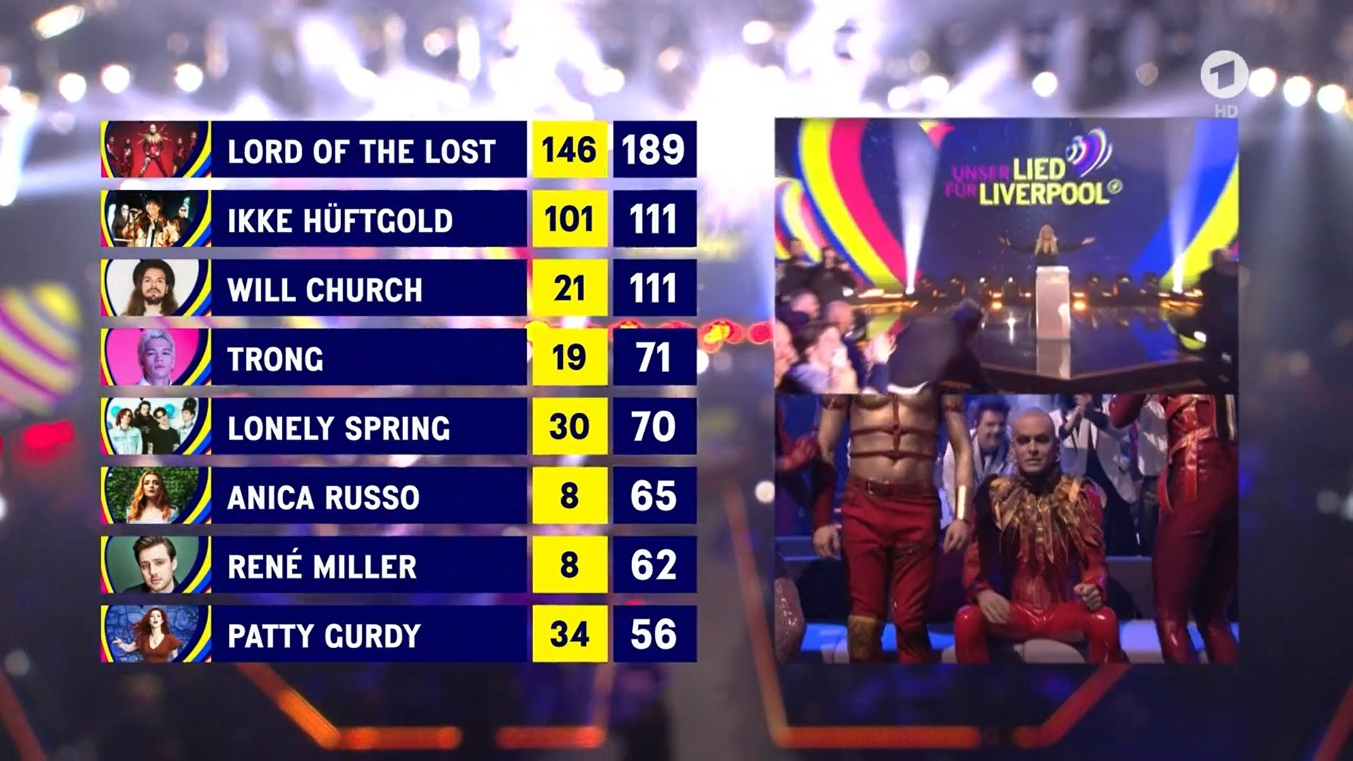 Zu erwähnen wäre vielleicht noch, dass die „internationale Jury“ praktisch gegenteilig zum Televoting abgestimmt hat. Daher danke an das Publikum für Lord Of The Lost.
